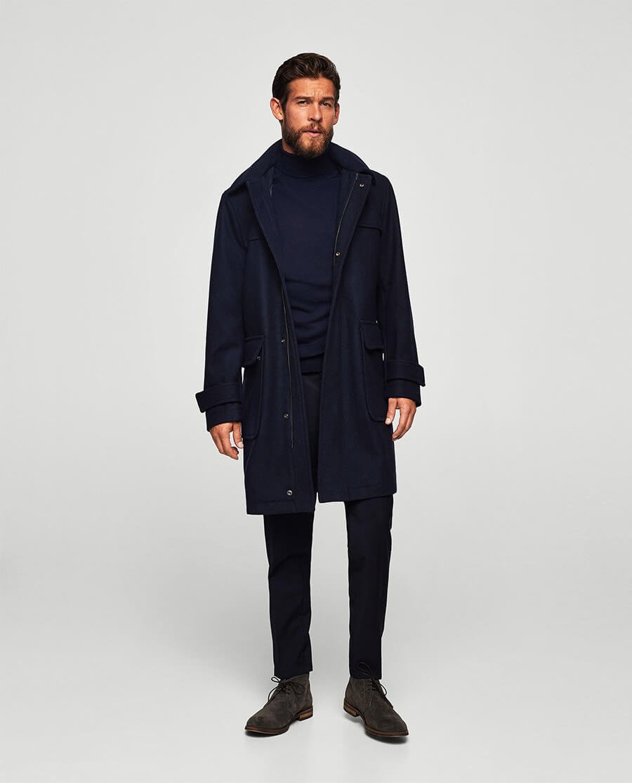 Hood wool-blend duffle coat